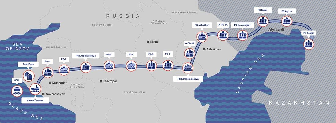The CPC exports both Russian and Kazakh oil. In 2024, Russian oil (produced in the North Caucasus) accounted for just 15 percent of the pipeline’s daily throughput of 1.2 million barrels. The rest is Kazakh oil pumped from the Central Asian state’s largest oilfields: Tengiz, Kashagan, and Karachaganak. These fields are complex, expensive to develop, and operated by consortiums including the world’s biggest energy companies (ExxonMobil, Chevron, Eni, TotalEnergies, Shell, and others). In total, Tengiz, Kashagan, and Karachaganak provide about 80 percent of Kazakhstan’s oil exports (and about 40 percent of the country’s export revenue). Almost all of this oil reaches world markets through the CPC.